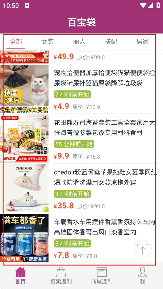 2.特价集:百宝袋每时每刻都在收集淘宝的各种促销活动,并按价格吸引力排序,让亲可以轻松发掘最优惠的商品。