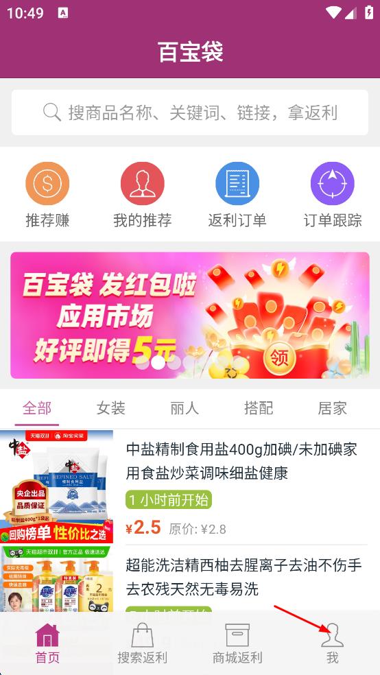 3.返利:通过百宝袋搜索商品全称(或者关键词),找到并购买相应的商品,确认收货后,淘宝就会把相关的隐藏折扣通过百宝袋支付给亲,这就是返利。