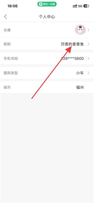 3、在个人信息页面,找到并点击上方的昵称选项。