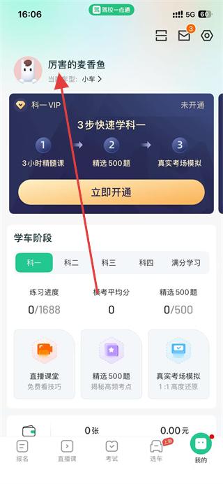 1、打开驾校一点通app,点击底部导航栏的我的选项。