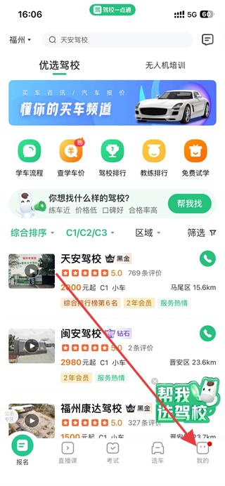1、打开驾校一点通,点击页面底部导航栏的我的。