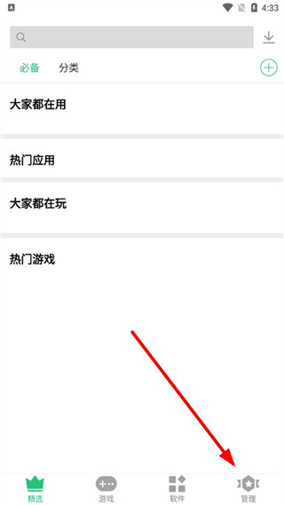 2、进入主界面后,点击底部导航栏的管理选项。