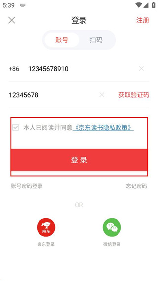4、获取并填写验证码,勾选同意相关政策的选项,再点击页面中的登录按钮完成操作。