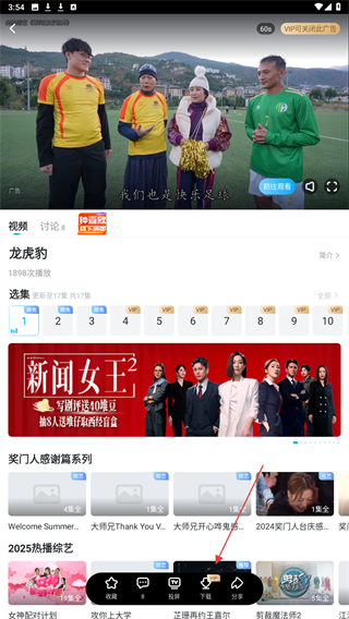 3、进入电视剧播放的页面内,点击下方下载的按钮即可。