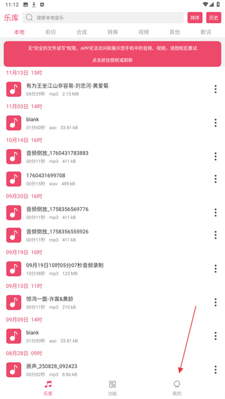 1、打开音乐剪辑器的界面内,点击底部导航栏的我的,进入个人页面。