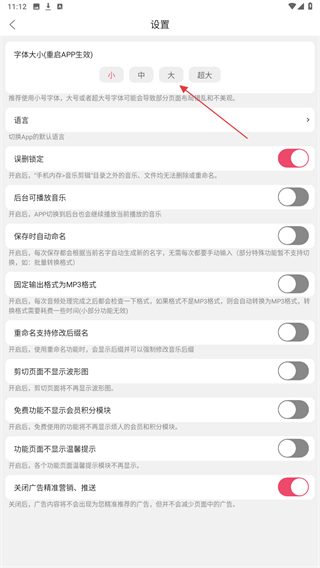 3、在设置界面中,找到字体大小板块,选择对应档位即可生效。