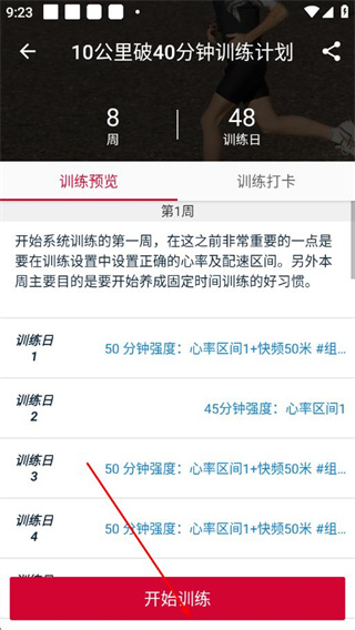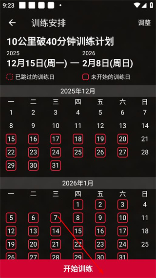 5、在训练安排页面再次点击开始训练,即可按照计划开启训练。