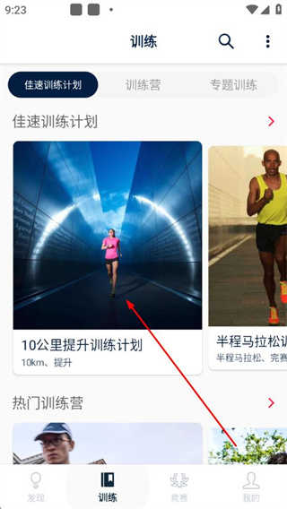 2、在训练页面的佳速训练计划区域,选择目标训练计划,点击进入计划列表页。