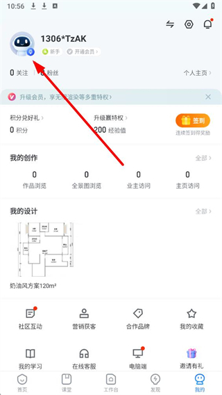1、在酷家乐设计师应用界面,点击底部我的选项,进入个人页面。