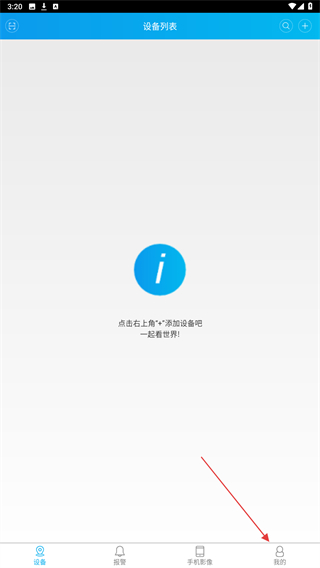 1、进入监控眼的设备列表页面,点击底部导航栏的我的选项。