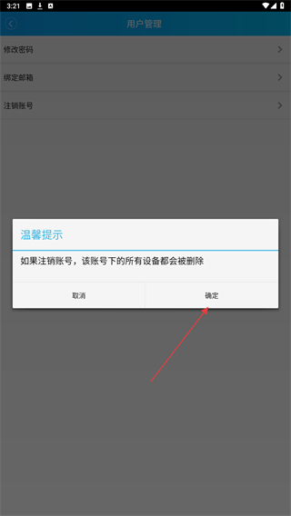 4、弹出温馨提示弹窗后,点击确定按钮,即可完成账号注销。