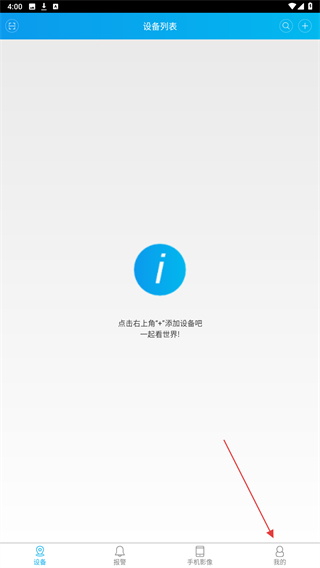 1、启动监控眼的软件,在首页底部点击我的图标。