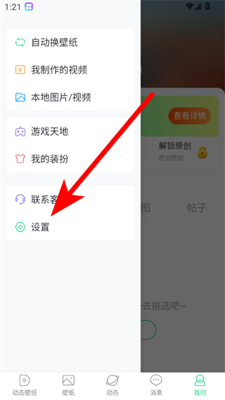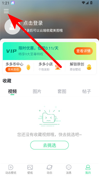 1、在壁纸多多我的页面,点击左上角菜单按钮,展开功能列表。