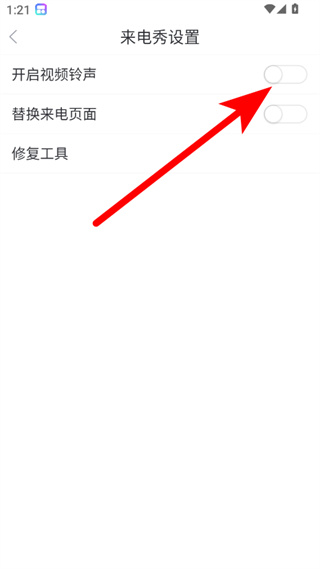 4、在来电秀设置界面,开启视频铃声开关,即可完成来电秀设置。