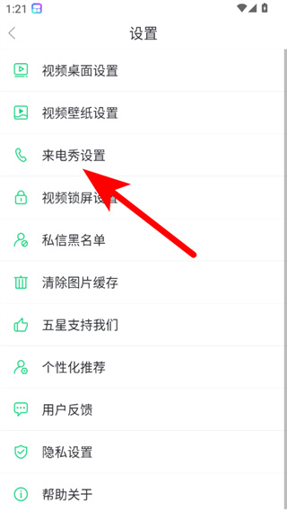 3、在设置页面,点击来电秀设置选项,进入对应设置界面。
