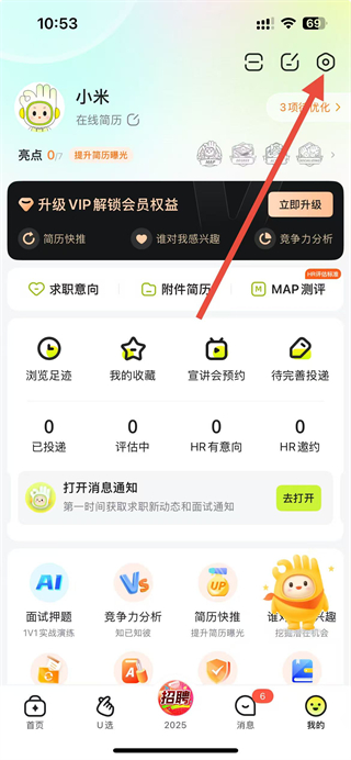 1、打开应届生求职APP,点击右上角的编辑图标,进入求职信息编辑页面。
