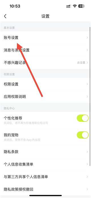 3、在设置页面中,找到账号设置选项并点击,进入对应的账号管理界面。