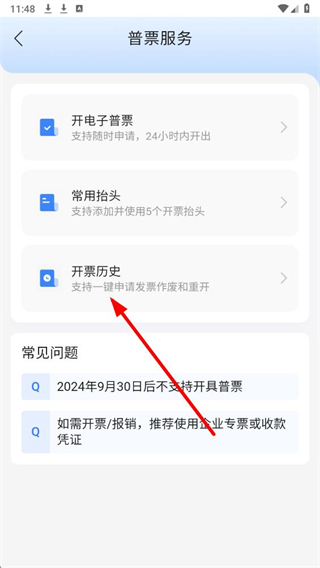 4、选择开票历史选项,即可在新页面查看全部的开票记录。