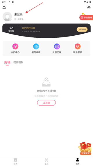 1、打开爱剪辑的APP,进入时点击右下角我的图标。