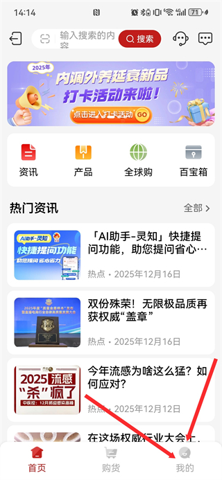 1、在无限极的首页,点击底部我的按钮,进入个人页面。