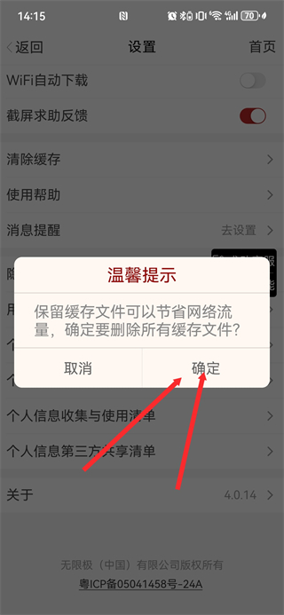 4、在弹出的温馨提示框中,点击确定按钮完成缓存数据的清理。