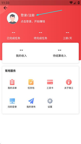 3、在对应页面中,找到登录注册选项,点击该选项进入京东微工的登录注册界面。