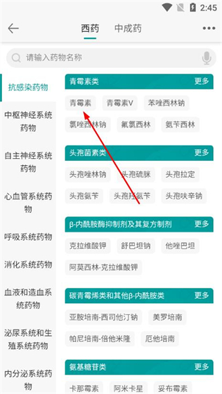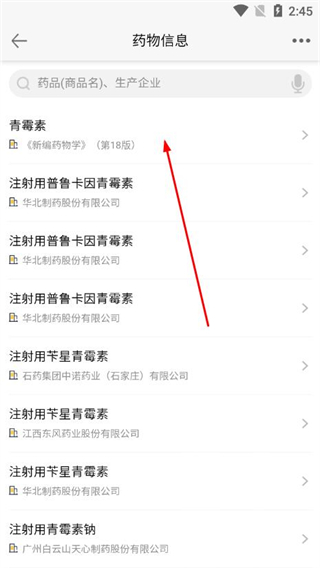 3、在药物列表中选择具体药物,进入该药物的信息列表页面。