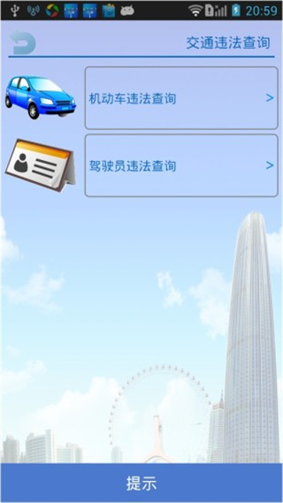 查询违法:查看已注册驾驶员在本计分周期内的扣分情况以及扣分详情、查看已注册车辆违法情况,包括每条违法的违法地点、违法时间、违法情节、罚款金额、扣分状况。