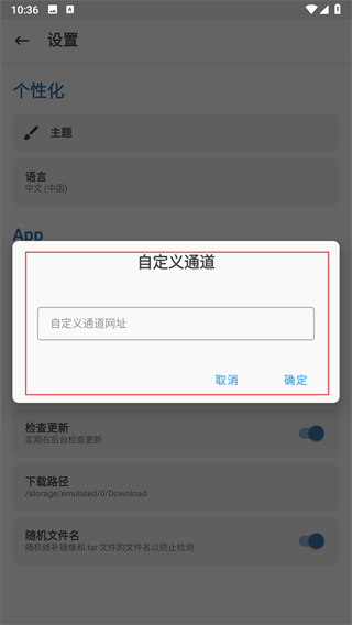 4、在自定义通道设置界面输入对应网址,确认内容后点击确定按钮完成设置。