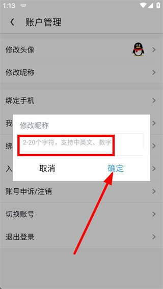 4、在输入框中填写新昵称,点击确定即可修改昵称。
