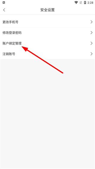 3、在安全设置页面,点击账号绑定管理选项,进入账号绑定管理页面。