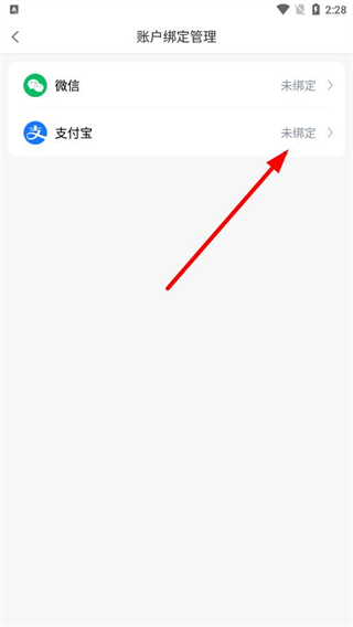 4、在账户绑定管理页面,点击支付宝选项,按提示完成授权操作,即可完成支付宝账号的绑定。