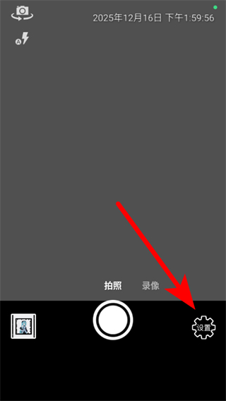 1.打开时间相机应用,点击右下角的设置按钮进入设置界面。