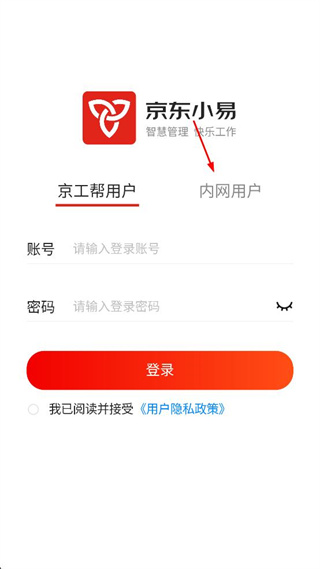 2、进入登录界面,选择内网用户选项,切换至对应的内网用户登录信息输入区域。