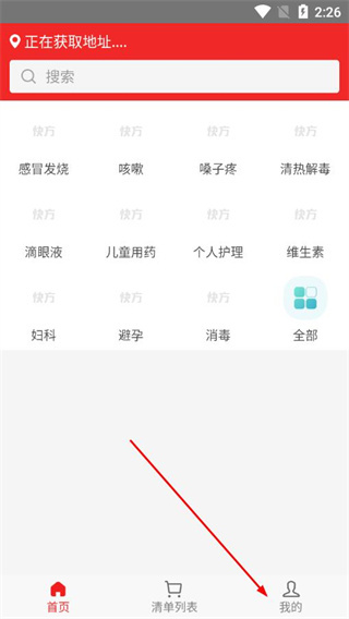 1、打开快方送药app首页,点击底部导航栏的我的选项,进入个人中心界面。