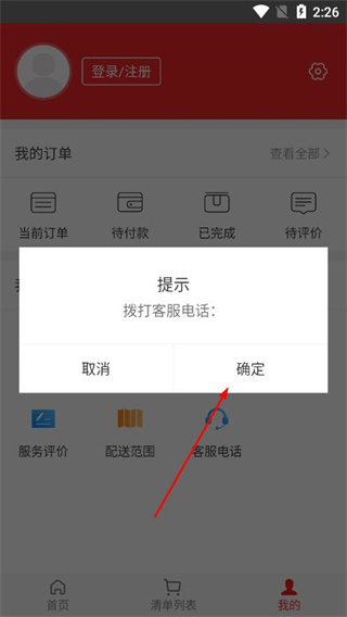 3、在弹出的提示框中,点击确定即可获取客服电话并联系客服。