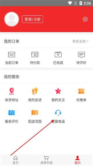 2、在个人中心页面的我的服务区域,找到并点击客服电话选项。