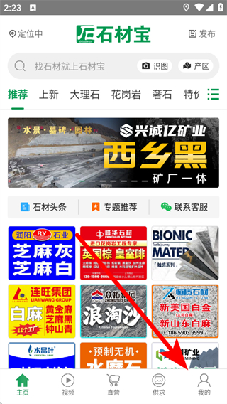 1、打开石材宝,点击底部我的,进入个人中心功能页面。