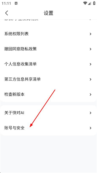 3、在设置页面中,点击下方的账号与安全选项,进入账号安全相关页面。