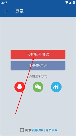 2、在侧边菜单中点击登录按钮,进入登录页面。