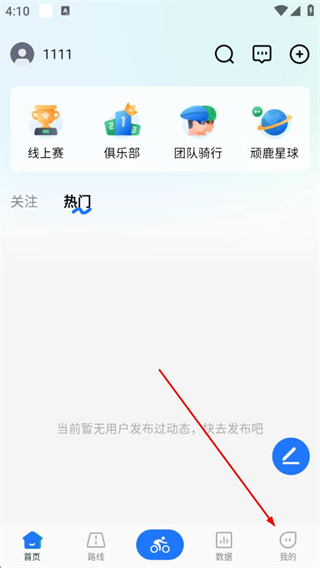 1、在顽鹿运动的首页,点击底部的我的选项。