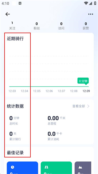3、查看近期骑行、统计数据等骑行记录内容。