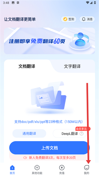 1、打开翻译狗软件,点击界面下方的我的选项,进入个人中心页面。