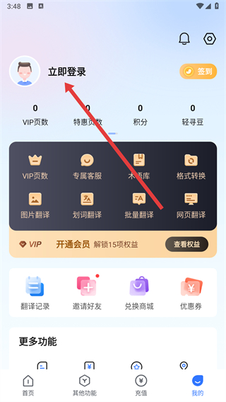 2、在个人中心页面中找到立即登录按钮,点击该按钮进入登录选择界面。