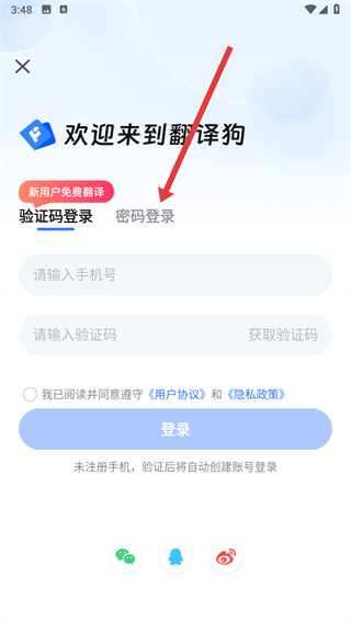 4、在密码登录页面依次输入手机号和密码,勾选协议后点击登录完成操作。