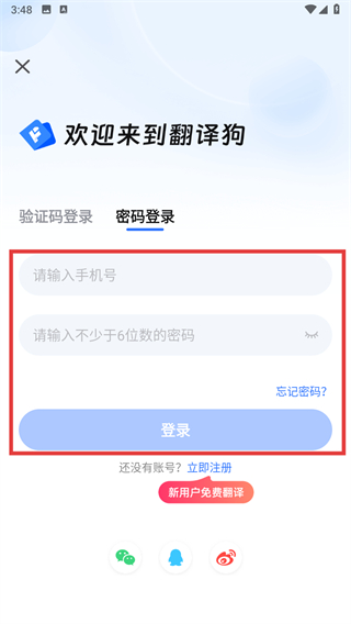 3、在登录选择界面里找到密码登录选项,点击后切换至密码登录输入页面。