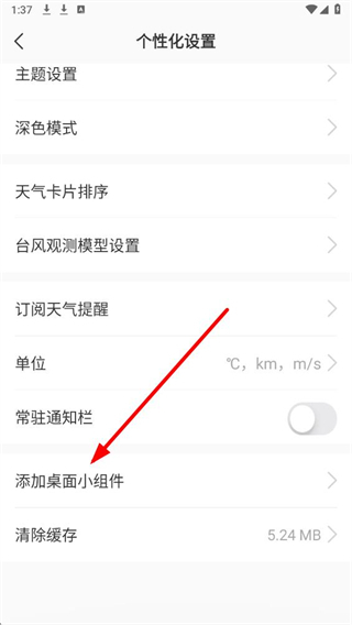 3、在设置页面里,选择添加桌面小组件选项,进入对应的操作说明页面。