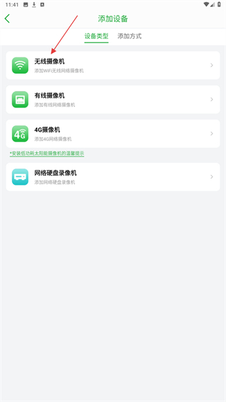 3、进入设备类型的页面内,点击无限摄像机的按钮。