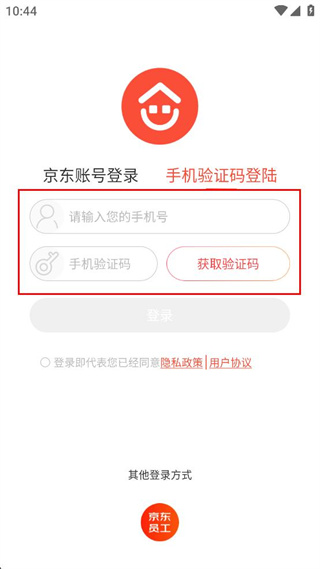3、在手机验证码登录区域的输入框内,填写对应的手机号码以及获取到的手机验证码。