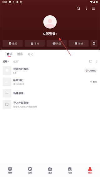 1、打开网易云音乐,点击底部导航栏的我的,进入个人中心页面。